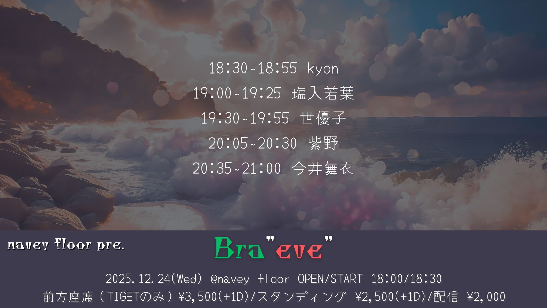 スタンディングチケット ¥2,500(+1D¥700) - online ticket : ¥2,000